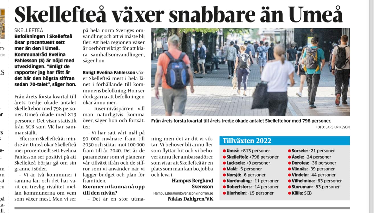 cities around Skellefteå grow while we shrank. And this for no real reason, as we had every